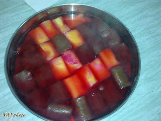 haa..next step..adik2 semua masakkan jelly..pastu terus "cuah" atau bahasa rasmi..letak atas swiss roll tu td..