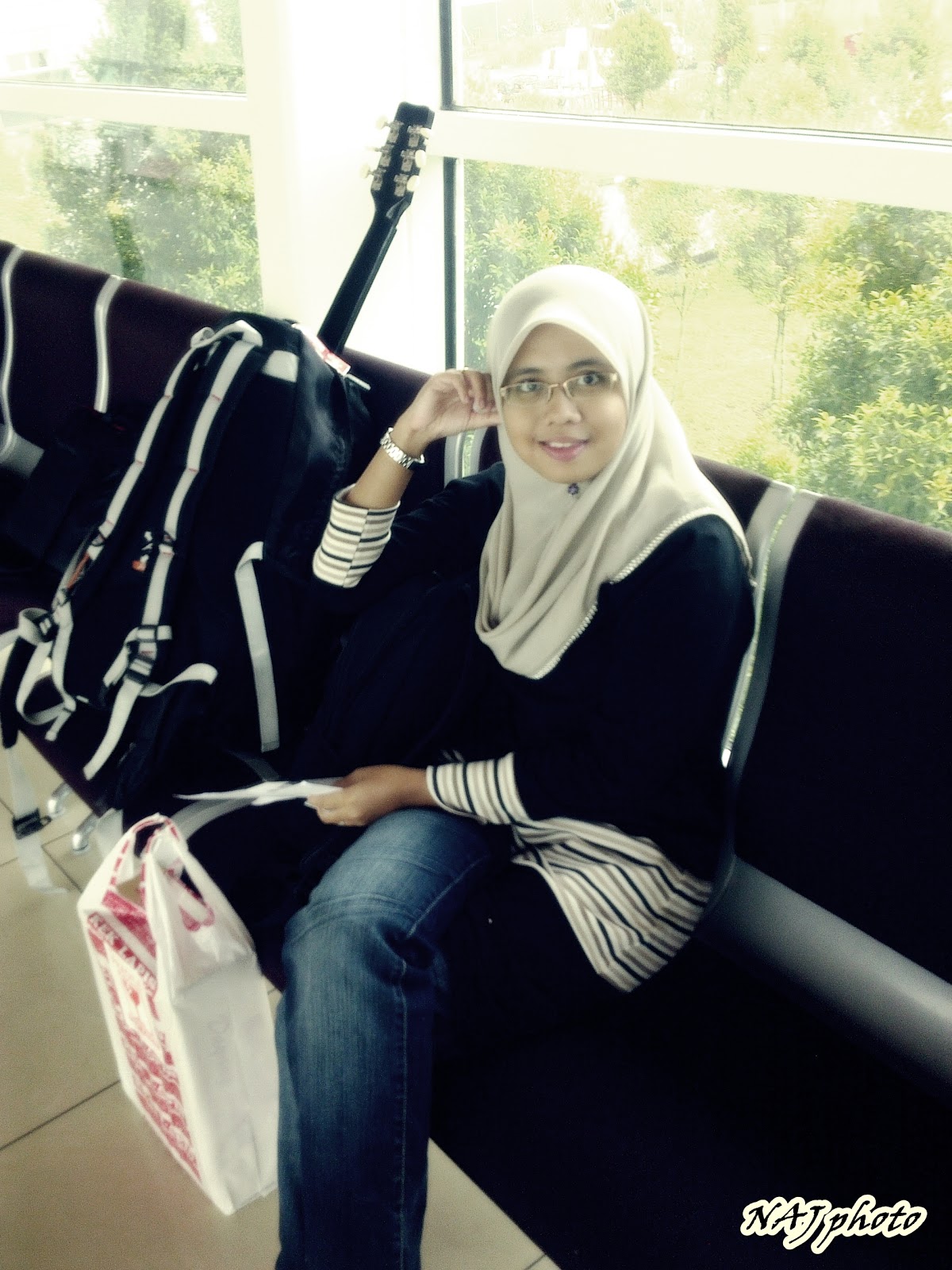Promoter yang jual tu tunjuk dia punya dah seminggu tak basuh. Nampak elok aje! Usop suruh dia try Ayu punya sebab saiz promoter tu lebih kurang Ayu je. Memang cantik dan menarik!