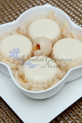 * puding ni boleh juga kalau nak dimakan dgn fruit coktail, cuma gantikan laici tu dgn fruit coktail ya.. bahan2 utk kuah tu yg lain2nya boleh guna sama cam dlm resipi.